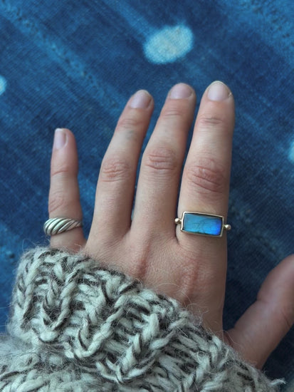 Labradorite in a handmade solid 14k Gold setting, the deep blue flash in this stone is so unique, had to set in gold