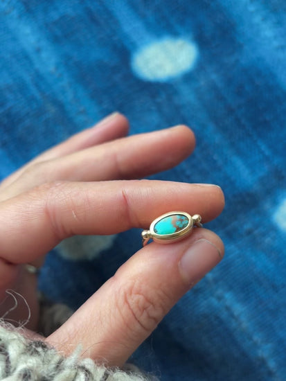 Turquoise from Royston mines in Nevada set in a handmade solid 14k gold setting, the matrix in this stone is so glittery and gorgeous, probably my favorite of my new gold rings!