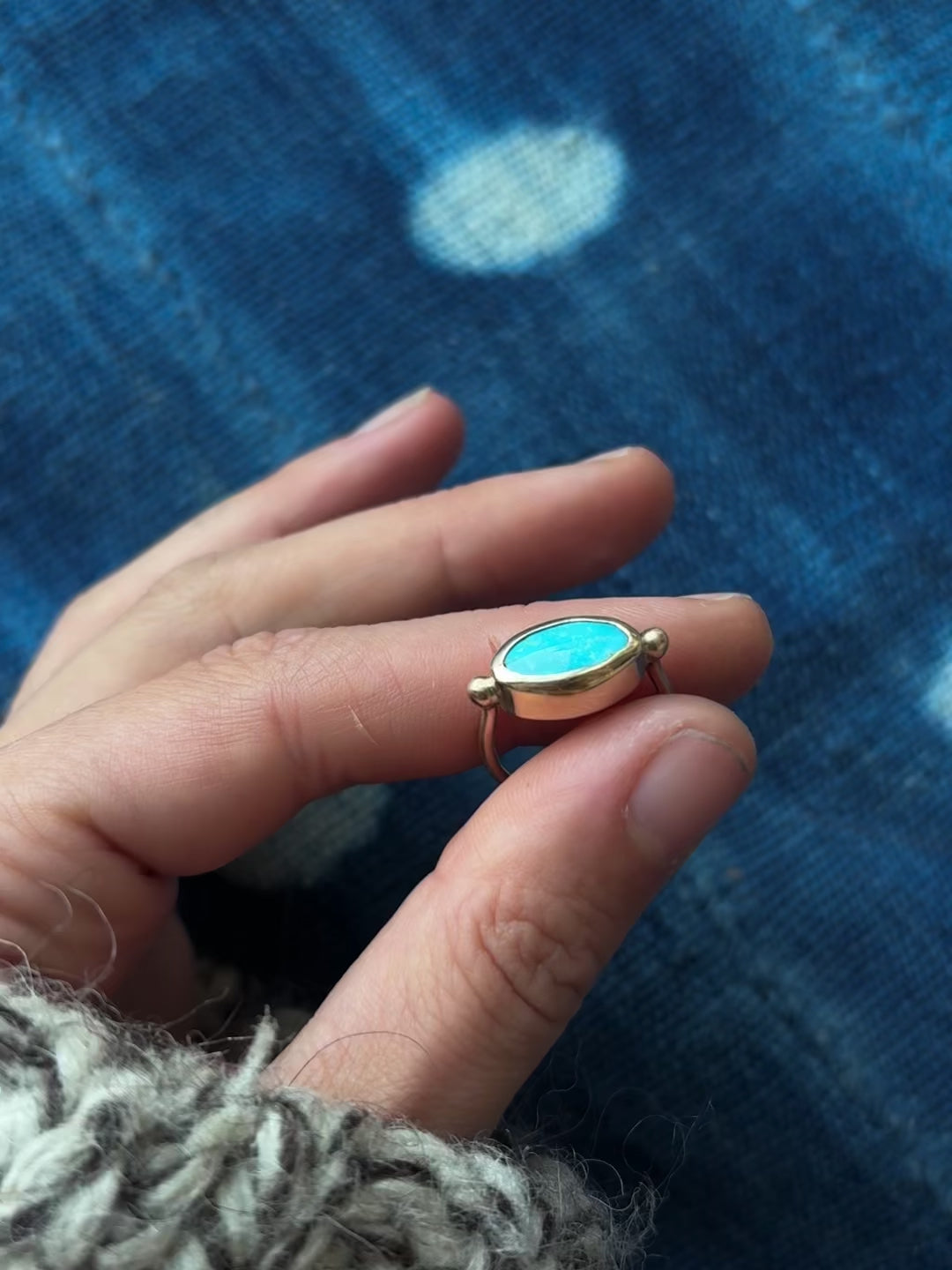 Turquoise from Turquoise Mountain mine in Arizona set in a handmade solid 14k gold setting